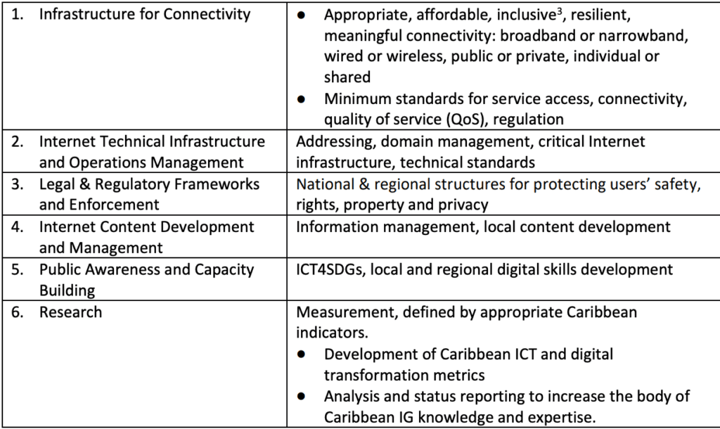 Table 1. Six key areas identified as priorities for Internet Governance Policy Development. (Source: CTU)
